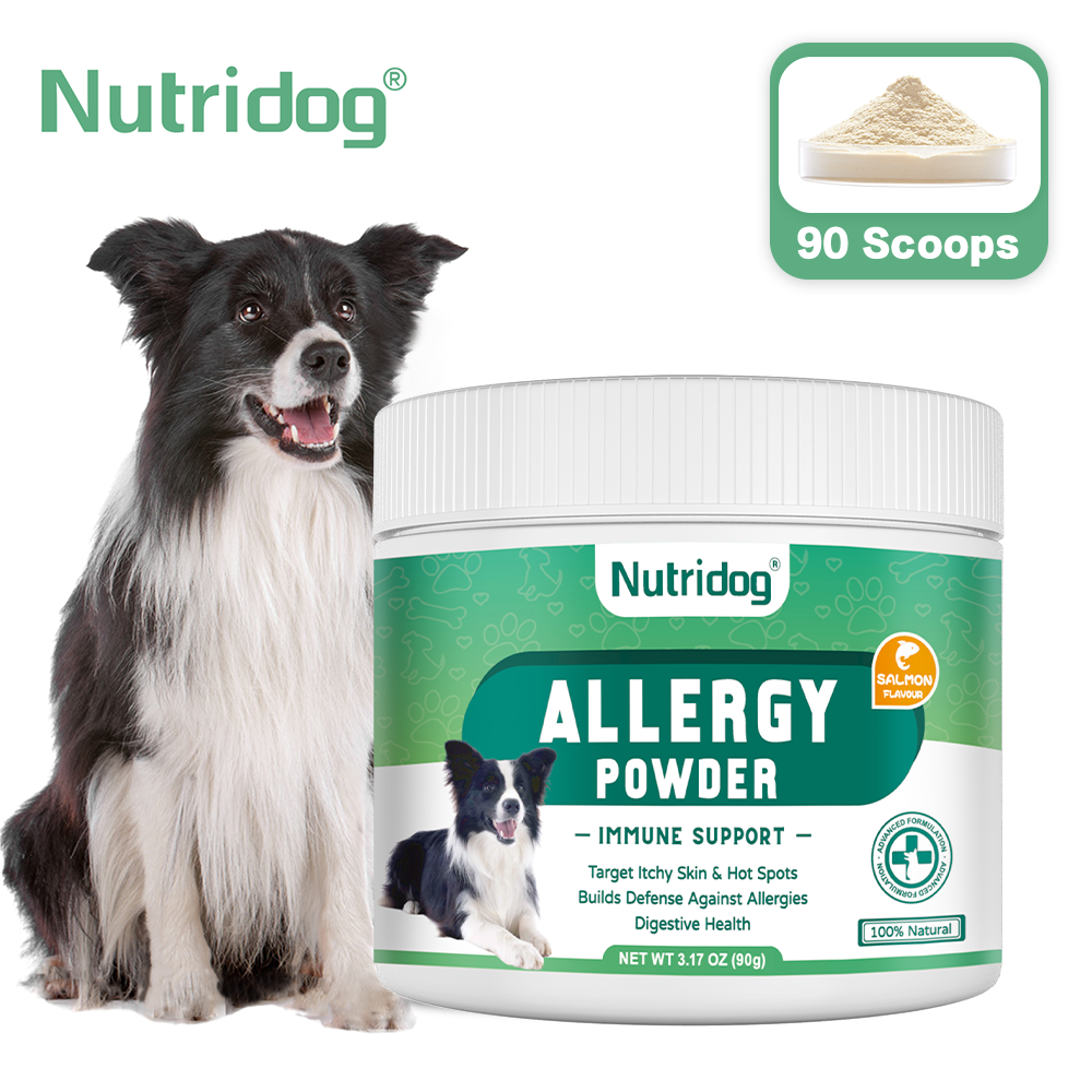 Allergy Powder for Dogs, 90g Salmon Flavor - Itch Relief & Immune Support with Probiotics, Quercetin & Salmon Oil | Vet-Approved Formula for Seasonal Allergies & Sensitive Skin (Salmon)