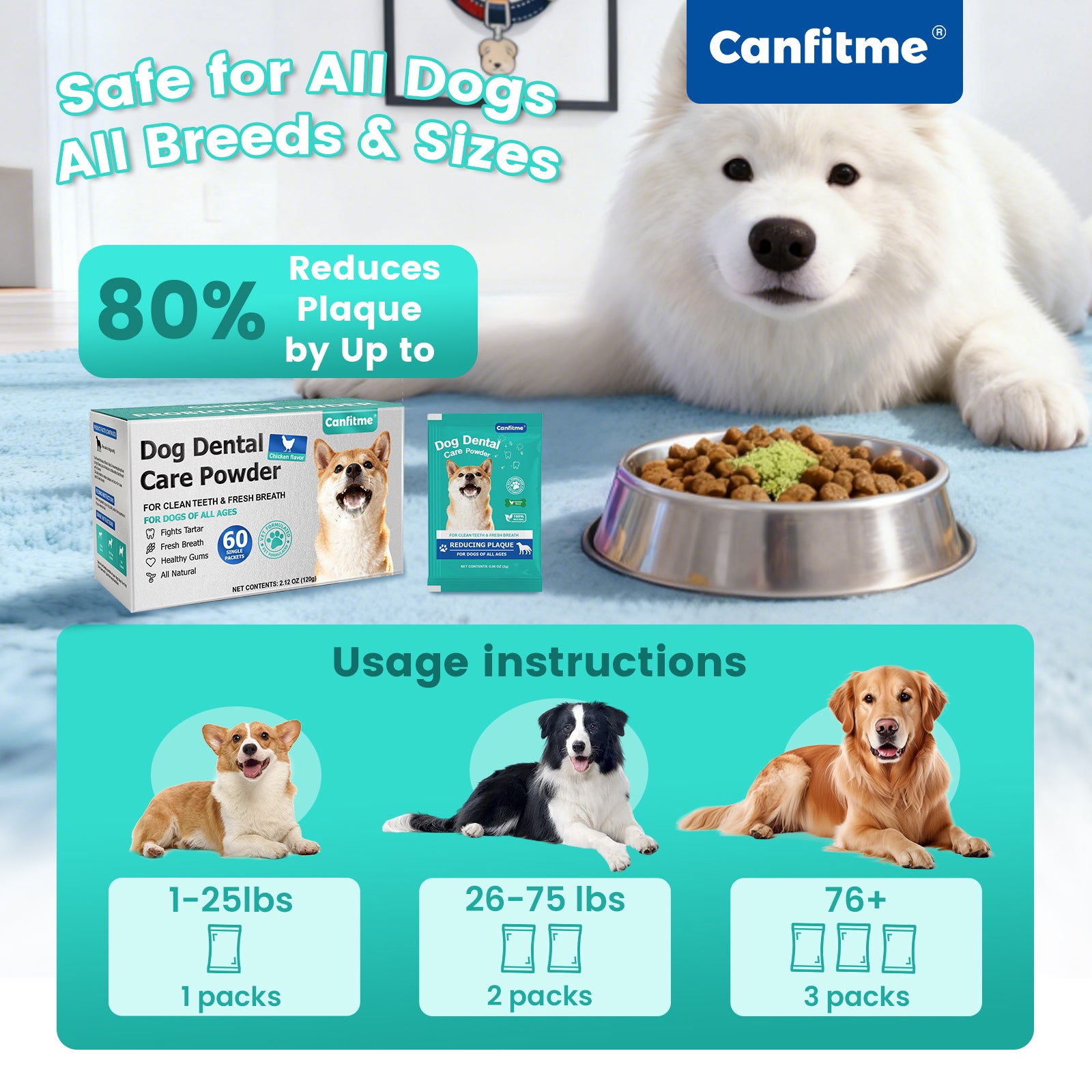 • Easy to Use: Forget the Hassle of Brushing! 60 Single-Dose Sachets Ensure Mess-Free Daily Use. just mix our dog dental powder into food or their water. And Let Our Effective Dog Teeth Cleaning Powder Do Its Job- Reaching Those Hard-to-Clean Spots for Fresher Breath and Better Dog Oral Care