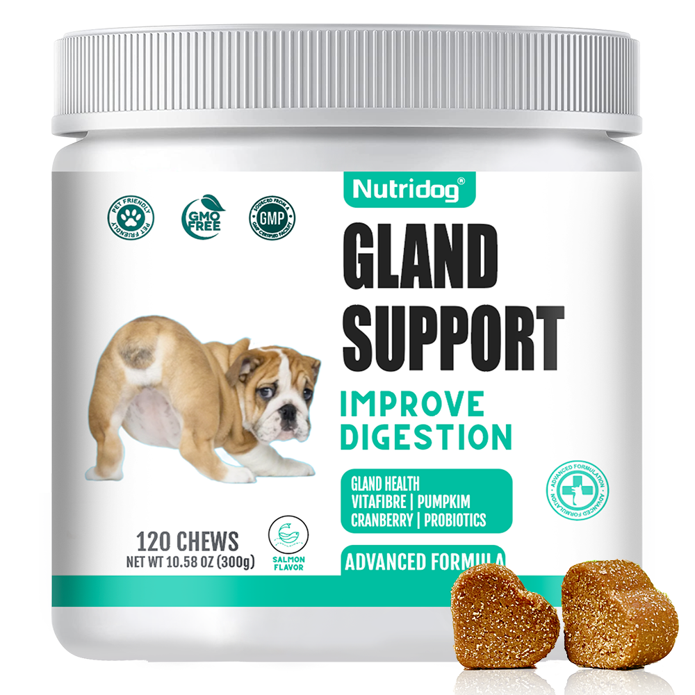 Nutridog Gland Support Chews for Dogs - Dog Bladder & Digestive Health Supplement with Pumpkin, Probiotics & Cranberry - Salmon Flavor Soft Chews to Support Anal Gland Function, Firm Stools & Gut Health (120 Chews)